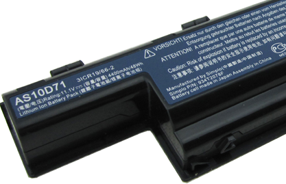 As can be seen in the picture to the below this Acer battery shows that it's a Li-ion battery, has a model number of Li-ion, rating of 11.1V, 4400mAH/48Wh, Part number "AS10D71"
